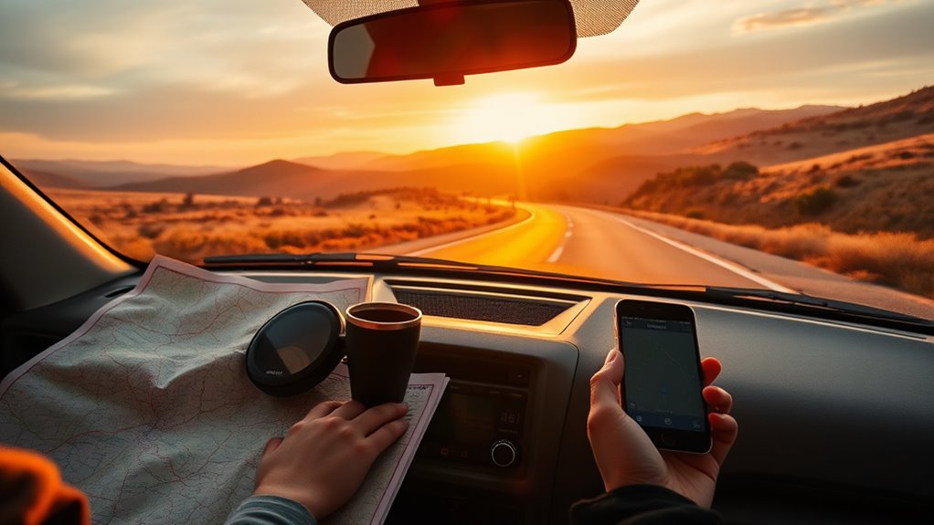 Avoiding burnout on the road isn’t just about physical rest; it’s also about mental recharging. Keep your playlist fresh, listen to engaging podcasts, or switch up your scenery to stay motivated. Staying hydrated and eating light but nutritious snacks help maintain your energy levels. Additionally, don’t forget to communicate with fellow travelers if you’re not alone—sharing the driving responsibilities and taking turns can reduce stress. Remember, the goal isn’t just to reach your destination quickly but to enjoy the journey along the way. By implementing solid rest stop strategies and following travel pacing tips, you’ll keep fatigue at bay, stay sharp, and make your road trip a memorable adventure rather than a marathon of exhaustion. So, plan ahead, listen to your body, and savor the experience—your future self will thank you.