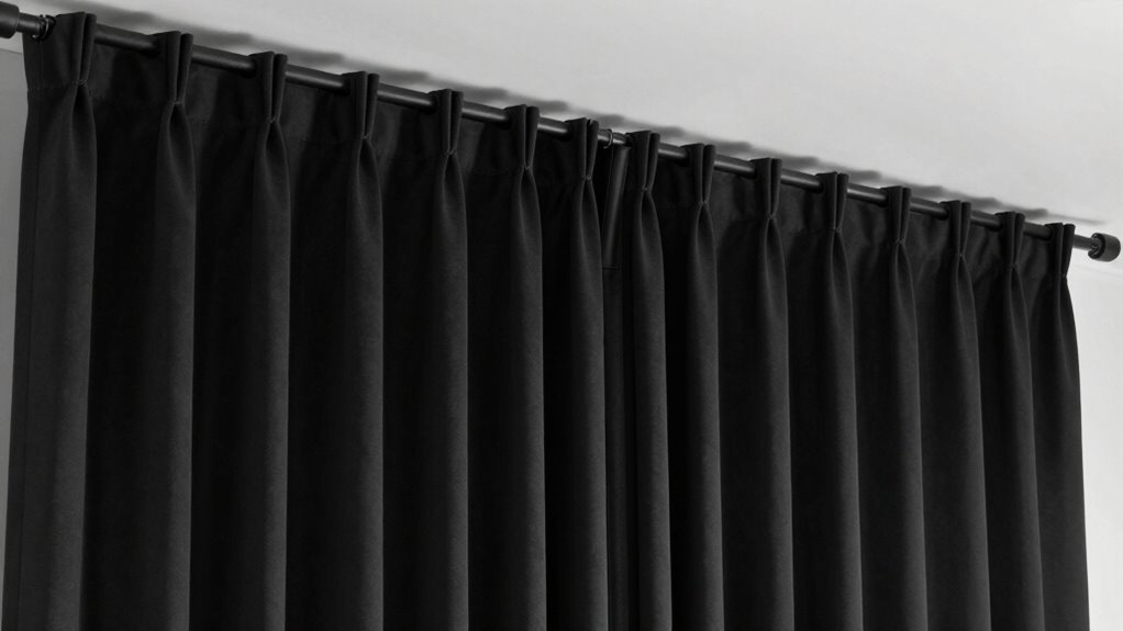 Choosing the right fabric for temporary blackout covers is essential to effectively blocking out light. You want a material with good fabric durability that can withstand regular use without tearing or fraying. Color options are also important; darker shades like black or deep navy absorb more light, providing better blackout performance. Light-colored fabrics tend to let in more light, reducing their effectiveness. When selecting fabric, consider these options: