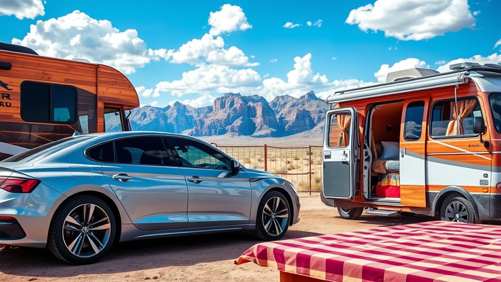 Planning a road trip starts with choosing the right vehicle, as it sets the foundation for a comfortable and enjoyable journey. When selecting between a car, RV, or campervan, you need to consider your destination, the number of travelers, and your budget. Each option offers distinct advantages and challenges, so think about how you’ll maintain your vehicle and what kind of travel insurance you’ll need to protect your trip. Proper vehicle maintenance is vital regardless of your choice, ensuring safety and minimizing breakdowns. For example, if you’re leaning toward an RV or campervan, you’ll want to check the mechanical condition thoroughly before hitting the road, including tires, brakes, and engine health. Having a reliable vehicle reduces stress and keeps your trip on track. Additionally, understanding your travel insurance options is essential—some policies cover breakdowns or roadside assistance, which can be a lifesaver on long trips. Regular vehicle maintenance also helps prevent unexpected issues and prolongs the lifespan of your vehicle.