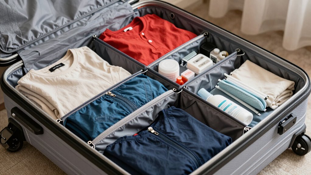 Even with a well-organized trunk, common packing mistakes can sabotage your efforts and leave you feeling frustrated. One mistake is overpacking by stuffing in unnecessary travel accessories, which wastes space. Instead, prioritize essentials and skip excess items. Another mistake is neglecting packing cubes; these help compartmentalize clothing and accessories, making it easier to find what you need without disrupting your entire setup. Failing to roll clothes instead of folding can also waste space and cause wrinkles. Avoid mixing items haphazardly—keep similar items together for easier access. Additionally, understanding space optimization strategies can further enhance your packing efficiency. Incorporating smart organization techniques, such as categorizing items and utilizing compression bags, can maximize your trunk’s capacity. Mastering these packing fundamentals can significantly improve your packing success. Moreover, being aware of effective space management can help you avoid common pitfalls and utilize every inch of your trunk. Ultimately, forget to leave room for souvenirs or future purchases. By being mindful of these mistakes, you can maximize your trunk’s capacity and keep your packing efficient and stress-free. Incorporating thorough analysis and honest breakdowns from trusted sources can help you make smarter packing decisions.