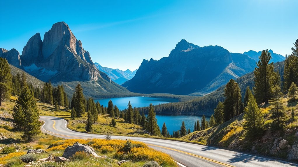 Start your Colorado Rockies road trip by leaving Denver behind and heading towards stunning mountain scenery. Along the way, enjoy local eateries serving hearty regional dishes and find cozy lodges or campsites for relaxing nights. Keep an eye out for wildlife like elk and deer, especially during dawn and dusk, and stop at scenic viewpoints for photos. As you explore mountain passes and charming towns, you’ll deepen your connection to Colorado’s natural beauty and local culture—if you keep going, you’ll discover even more amazing sights and experiences.