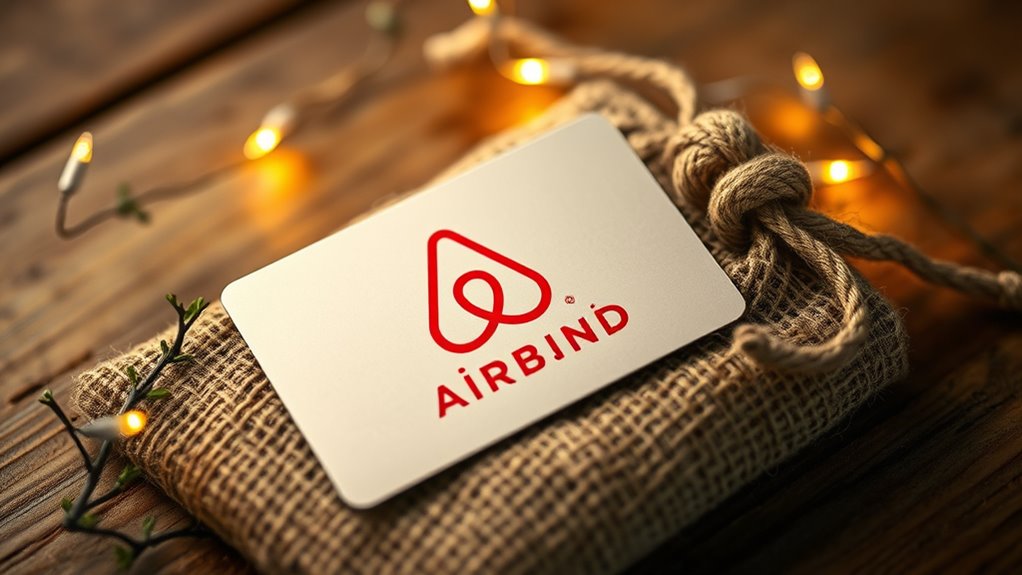 Considering the available customization options can substantially enhance the appeal of your Airbnb gift card email. Many platforms let you personalize the message, include the recipient’s name, or add a brief note to make it more special. You can often choose the gift card amount, guaranteeing it fits your budget or the occasion. Some services even allow you to set an expiry date, giving the recipient a clear timeframe to use the gift. The email delivery method also makes it easy to forward the gift or print it out for a physical presentation. These customization features let you tailor the gift to your recipient’s preferences, making it more thoughtful and memorable. Ultimately, customizing your Airbnb gift card ensures it feels personal and meaningful.