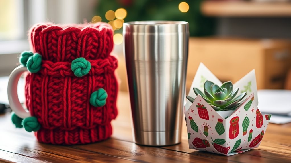 Absolutely, including handwritten notes with inexpensive coworker gifts is like adding a splash of personal color to a simple sketch. I always find that a heartfelt message transforms a modest gift into a treasured keepsake. It shows thoughtfulness and makes your gesture stand out. So, don’t hesitate—write a quick note to share your appreciation, humor, or holiday cheer. It’s the secret ingredient that turns a small gift into a memorable gesture.