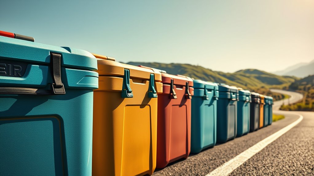 Ever wondered how you can get the most out of your cooler? I recommend adding a high-quality insulated liner or extra ice packs for longer freshness, a divider to organize drinks and snacks, and a drain plug for easy cleaning. Investing in a sturdy lid lock prevents spills, while a bottle opener attached to the cooler adds convenience. These accessories make your cooler more efficient, ensuring your drinks stay cold and accessible on every adventure.