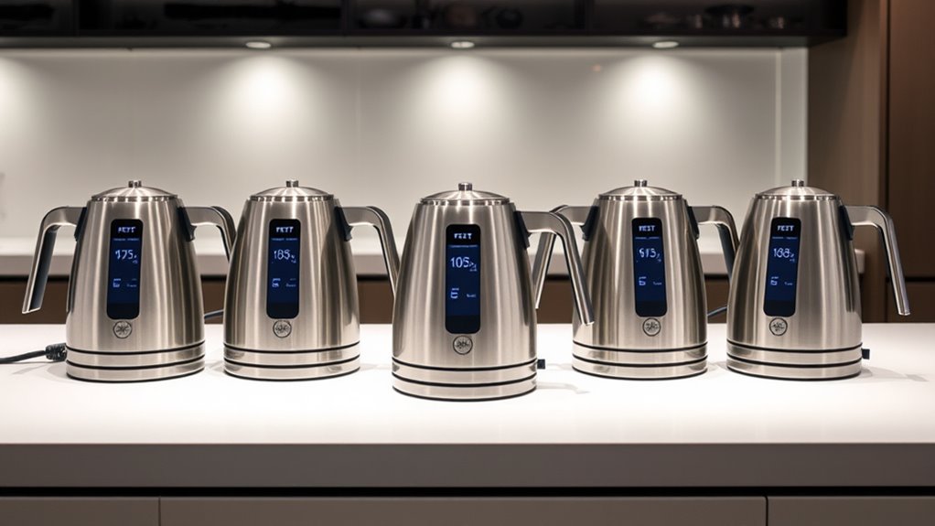 I love how these kettles let me be the maestro of my brew, adjusting the temperature mid-stream like a DJ remixing a track. With precise controls, I can tweak the heat during steeping to extract the perfect flavor profile. It’s as if I have a secret recipe at my fingertips, ensuring every cup is just right—hot enough to awaken my senses, but never boiling over into bitterness.
