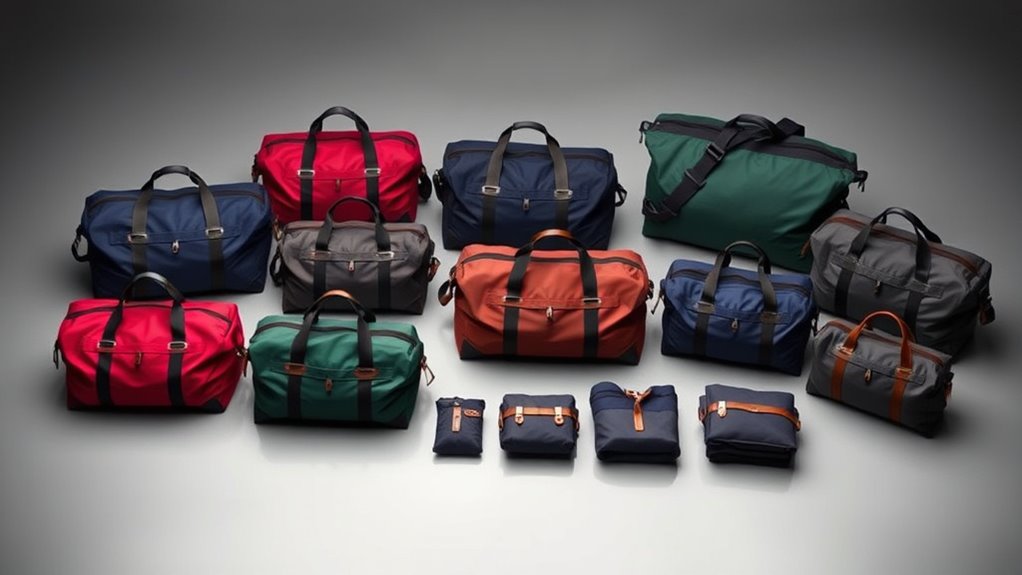 Ever wonder how to choose the right foldable duffel bag size for your needs? The key is to take into account its capacity, which typically ranges from 30-40 liters for short trips to over 100 liters for longer journeys. When unfolded, check the dimensions to ensure it fits your luggage restrictions and space requirements. A larger bag offers plenty of room for bulky items, multiple outfits, or sports gear, but it can be less portable when fully packed. The foldable feature allows you to compress the bag into a smaller size, making storage simple when not in use or when you need an extra bag. Your choice should reflect your travel duration, packing style, and whether it’s for daily use or heavy-duty trips.