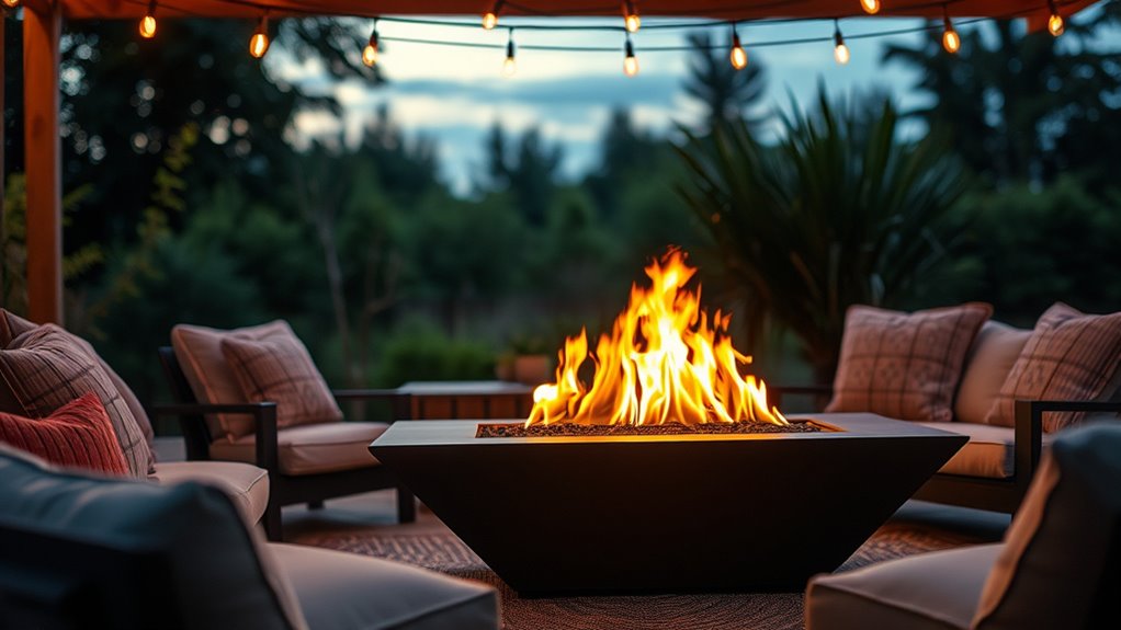 The design and aesthetics of a portable propane fire pit play a key role in how well it complements your outdoor space. I look for styles that match my decor, whether modern, rustic, or somewhere in between. Features like visible flames, lava rock accents, and sleek finishes add visual appeal and create a cozy atmosphere. Portability is also important, so I prefer lightweight models with foldable or removable legs for easy transport and storage. Color options like black, stainless steel, or enamel finishes help me coordinate with my outdoor furniture. The overall shape—round, square, or hexagonal—affects the fire pit’s style and how seamlessly it integrates into my patio or garden. Thoughtful design choices make a fire pit both functional and visually pleasing.