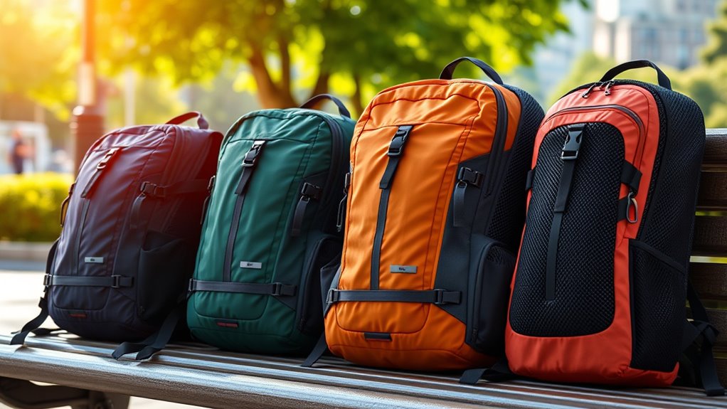 Ventilation features notably boost comfort during extended wear. They allow air to circulate, reducing sweat buildup and preventing overheating. I’ve found that well-ventilated packs help me stay cooler and more comfortable, especially on long hikes or busy days. Mesh panels and adjustable straps enhance breathability, making a noticeable difference. If you’re planning to wear your pack for hours, prioritizing good ventilation is essential for staying fresh and comfortable.